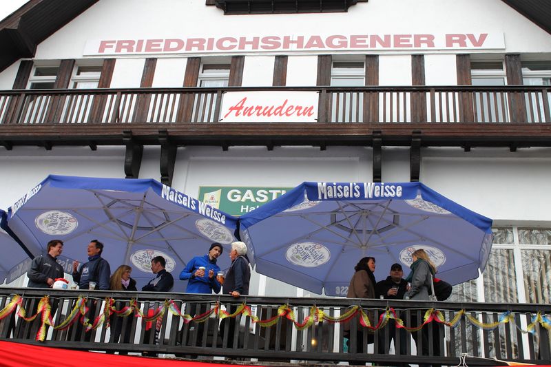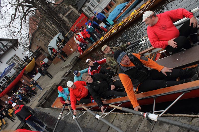 Da war das Rudervolk also wieder bei uns, trotz kalten Skull-Fingern bei 3-4 Grad morgens und gräulichem Himmel. Viele, viele Boote mit Hunderten von Ruder-Hungrigen kamen wie magnetisch angezogen zum FRV, um sich freudig wiederzusehen und Spaß zu haben miteinander, bei heiß-dröhnender Musik, fürchterlichem Durst vor allem, sowie Hunger. Dem konnte abgeholfen werden.